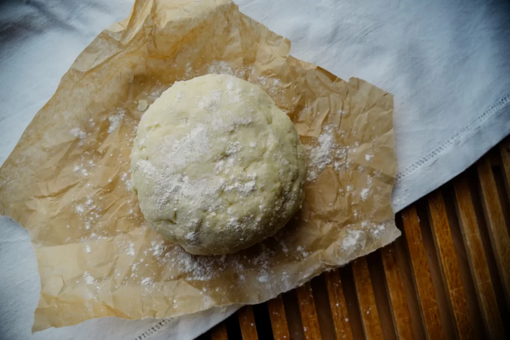 3. Den Teig zu einer Kugel formen, in Frischhaltefolie wickeln und für 2 Stunden in den Kühlschrank legen.